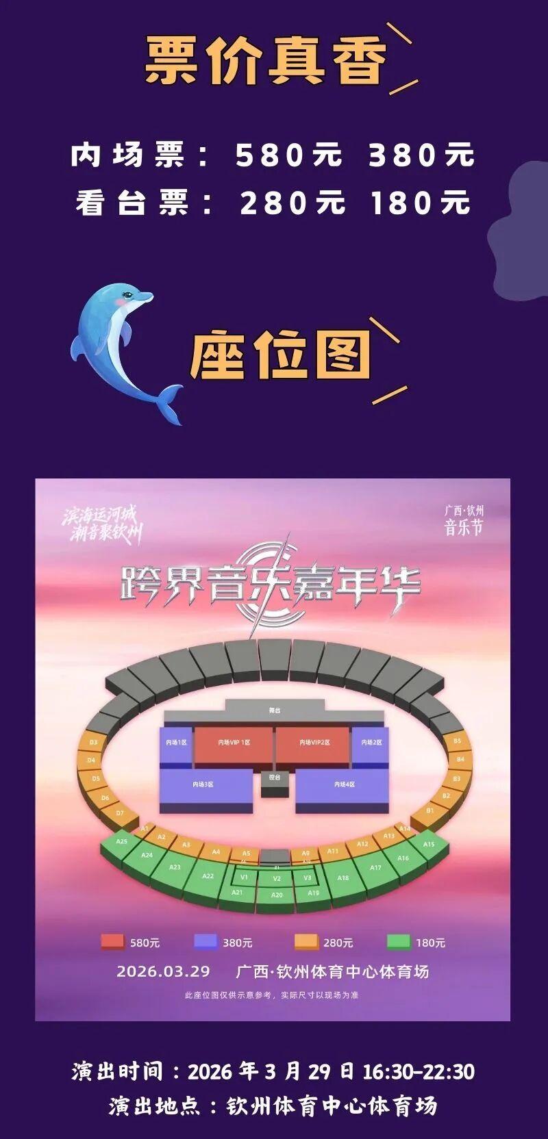 倒计时1天!2026钦州跨界音乐节预售票3 月 6 日 20:00准时开抢!时间:2026年3月29日地点:钦州市体育中心体育场票价 & 座位图票务平台大麦|猫眼|抖音|携程秀动|票星球|飞猪|中演小程序点击下方图片长按扫码购票除了音乐节还有热血足球来袭!2026 中甲赛程正式公布...