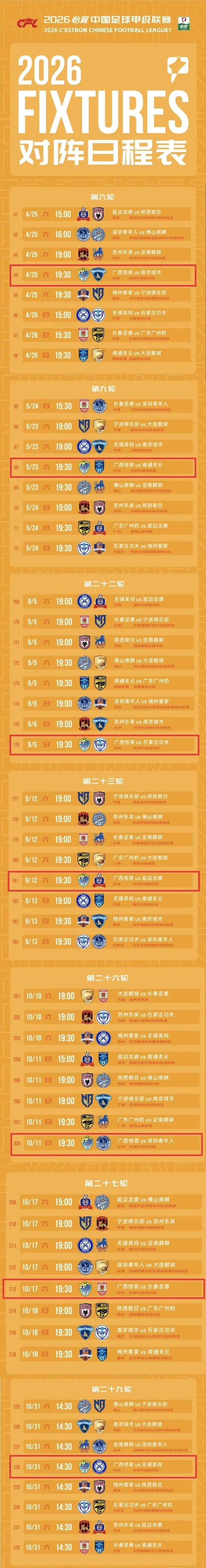 2026 中甲赛程正式公布!